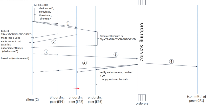 - 2.1) 2.2) endorsing peer는 거래를 가지고 시뮬레이팅을 한다