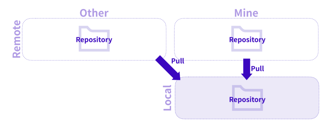 - 마찬가지로 다른 사람이 Remote Repository에 올려 놓은 소스 코드를 내 Local Repository 로 가져올 수도 있음