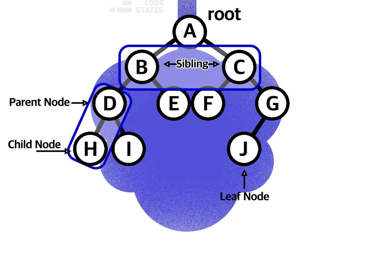 - 부모 노드(Parent node) : 두 노드가 상하관계로 연결되어 있을 때 상대적으로 루트에서 가까운 노드