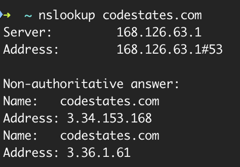 터미널에서 nslookup을 이용해 IP 주소를 확인할 수 있다.