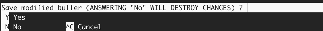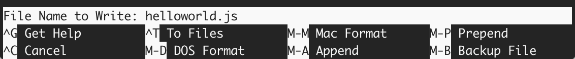 코드를 작성한 다음 Ctrl + X, Y, Enter 를 순서대로 입력하면, 새로운 파일을 저장할 수 있다.